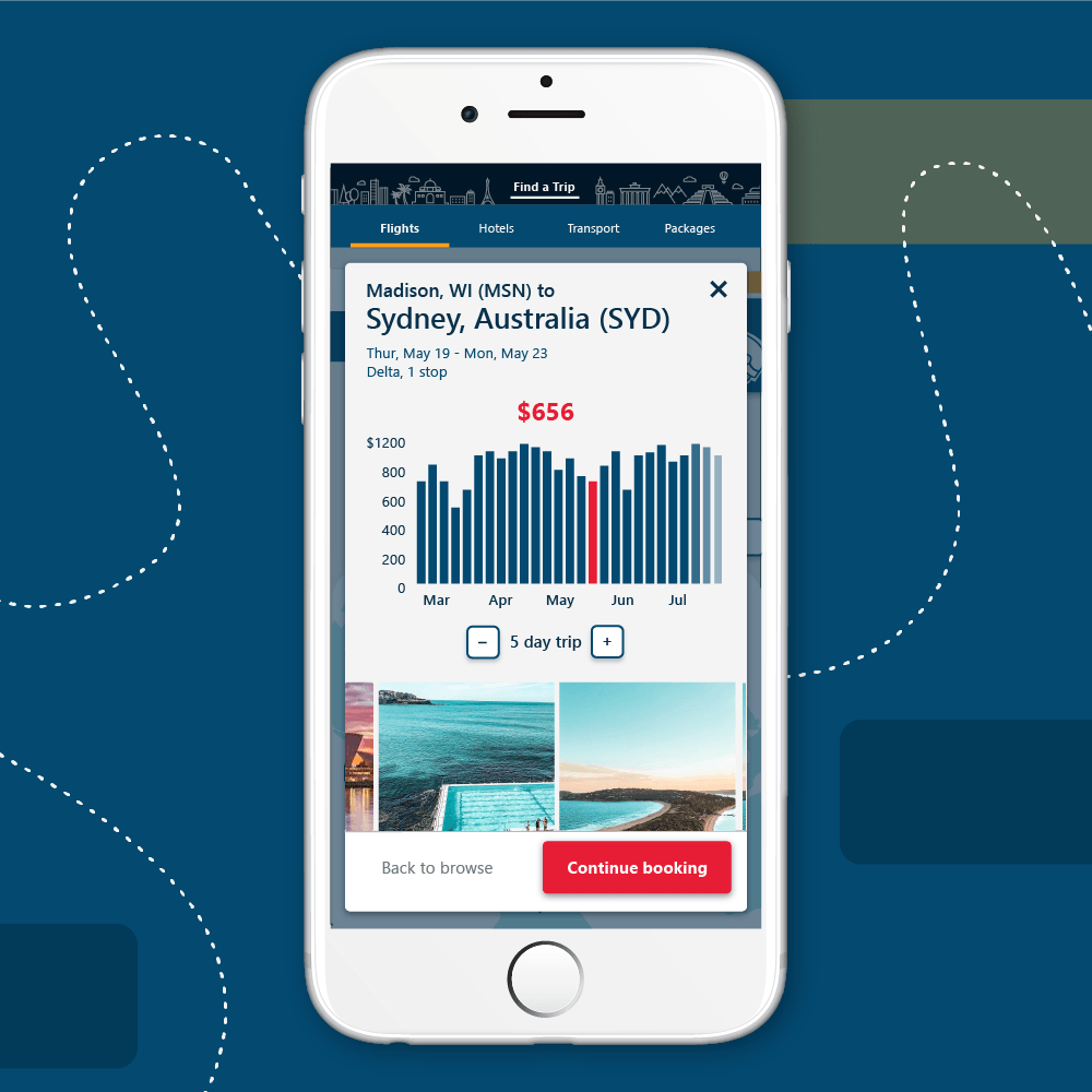 Fast forward to the day of your trip. When you open your app, instead of heading to Find a Trip, you're shown details on your Current Trip instead.